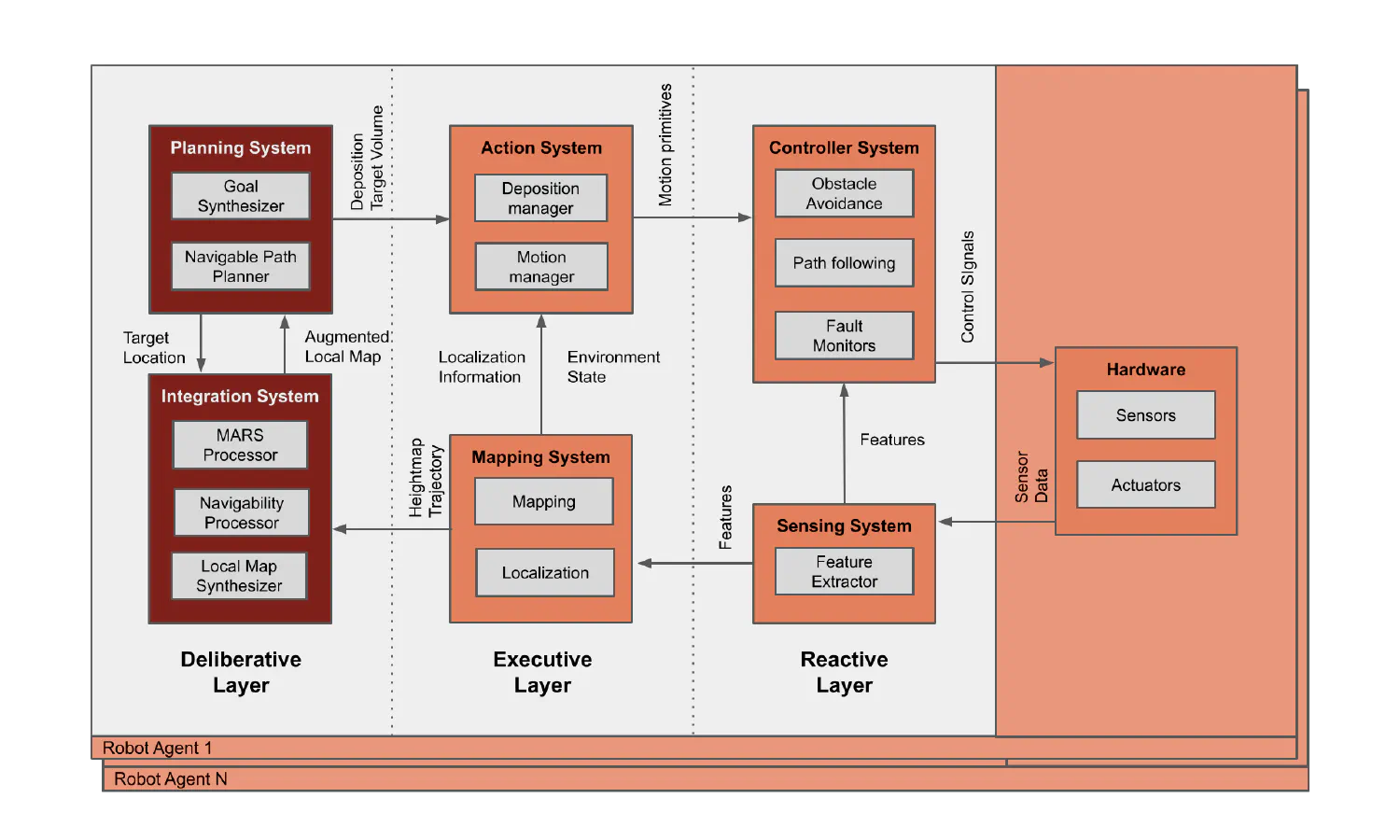 Design and Simulation of a Multi-Robot Architecture for Large-Scale Construction Projects