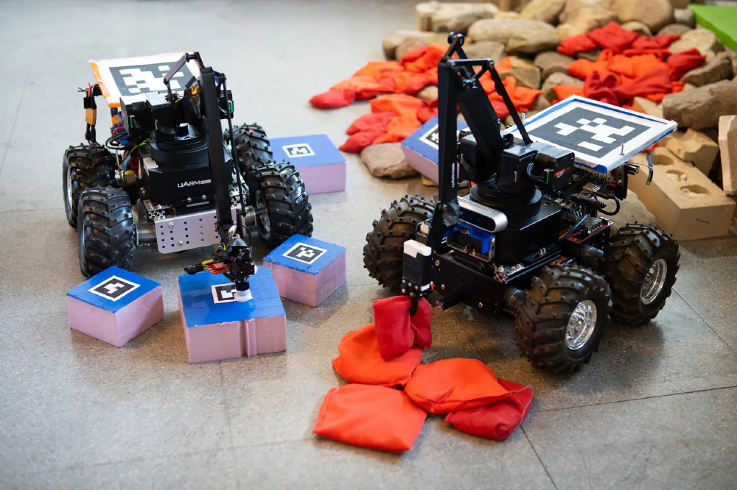 Autonomous Multi-Material Construction with a Heterogeneous Robot Team